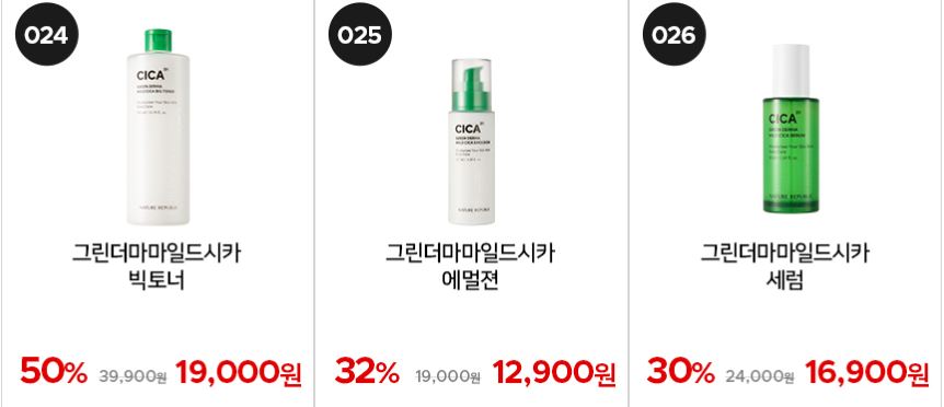 할인 품목 : 수딩크림, 토너, 에멀전 등
