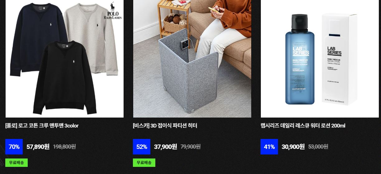 할인 품목 : 의류, 가전, 화장품 등