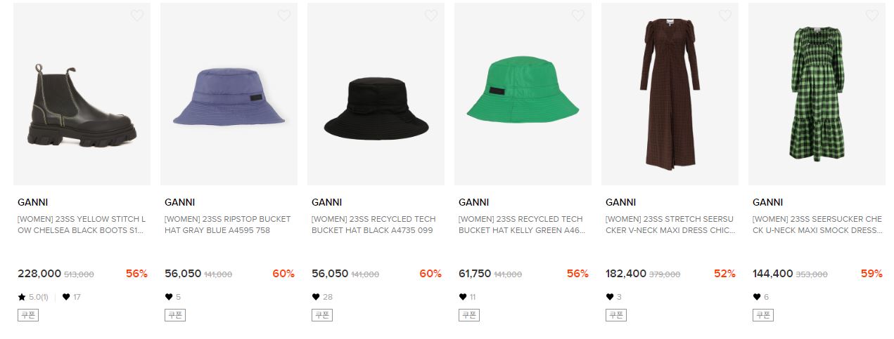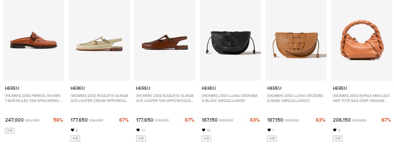할인 품목 : 의류, 가방, 신발 등