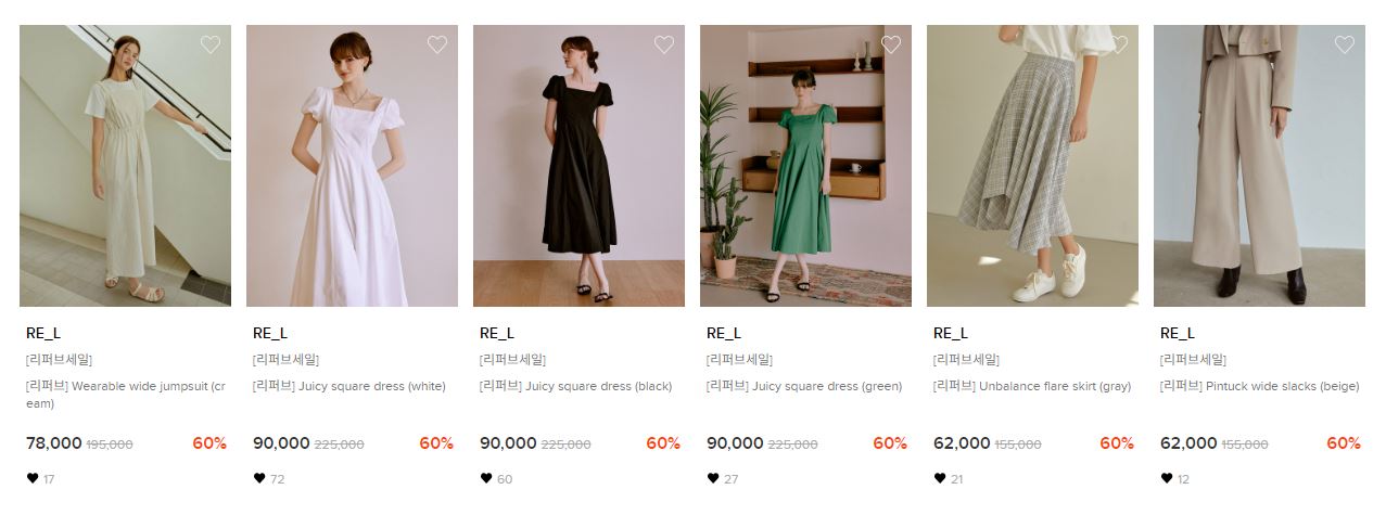 할인 품목 : 점퍼, 티셔츠, 팬츠, 원피스 등