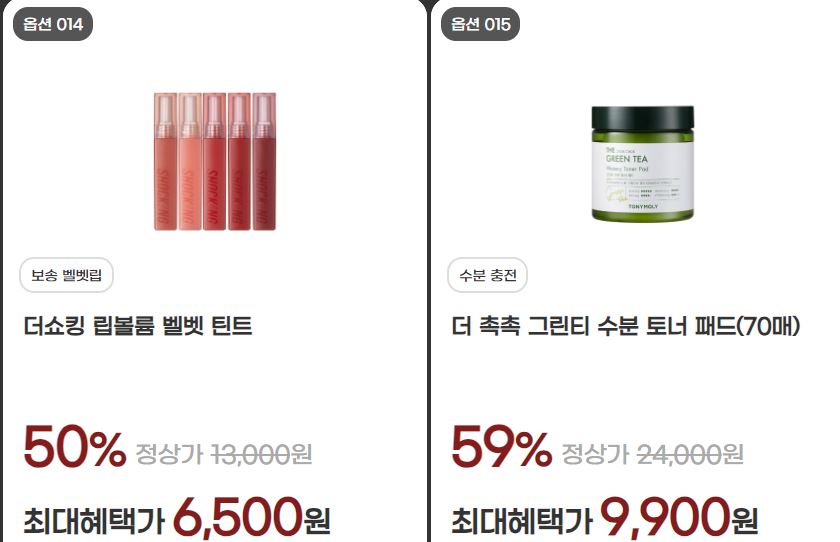 할인 품목 : 틴트, 수분크림, 에센스 등