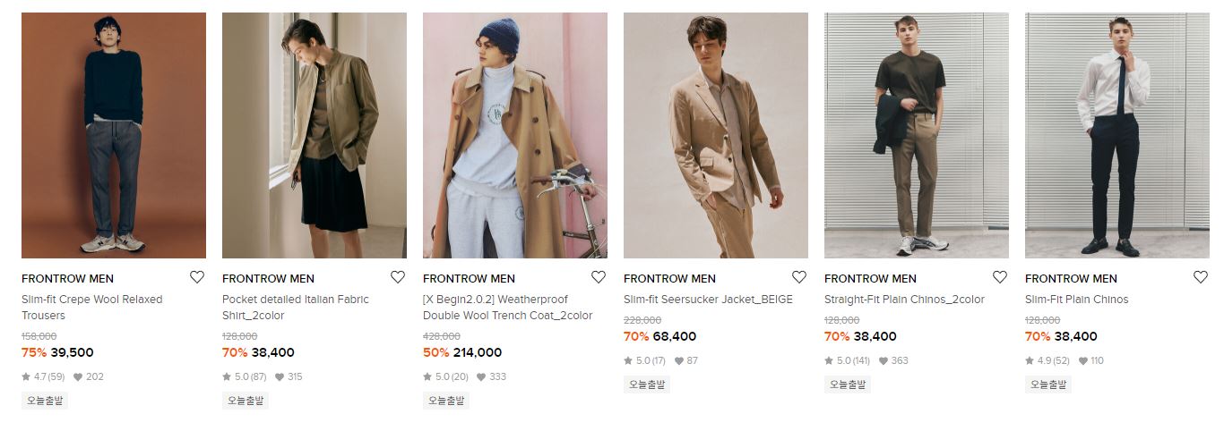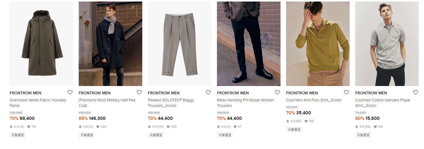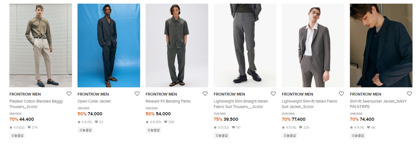 프론트로우 맨 다양한 제품을 할인 판매하네요.