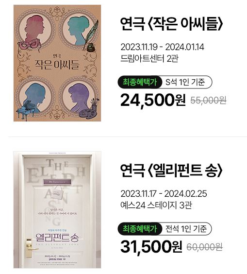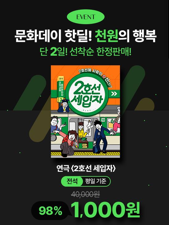 할인 품목 : 뮤지컬, 연극, 전시 등