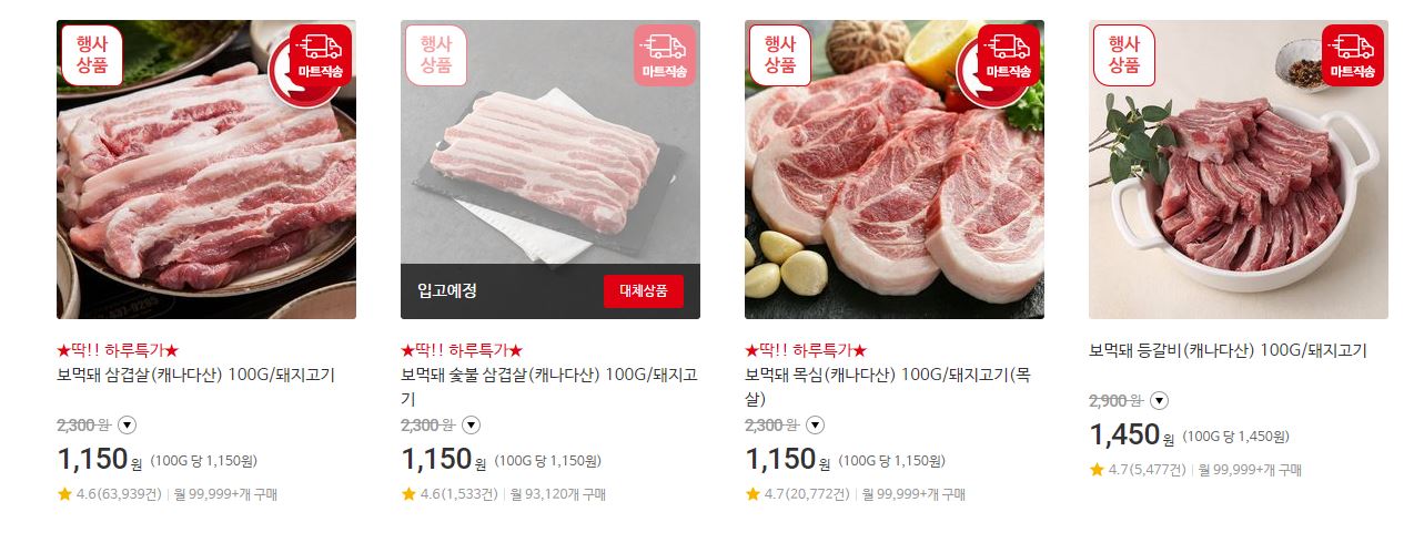 할인 품목 : 삼겹살, 목심 등