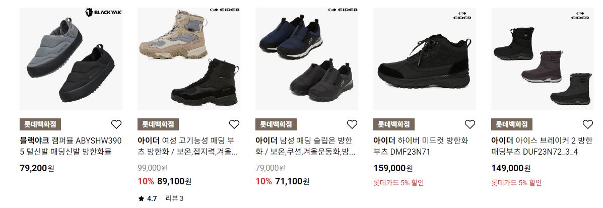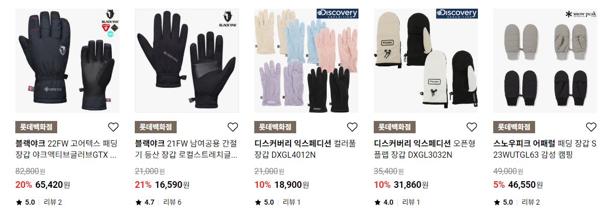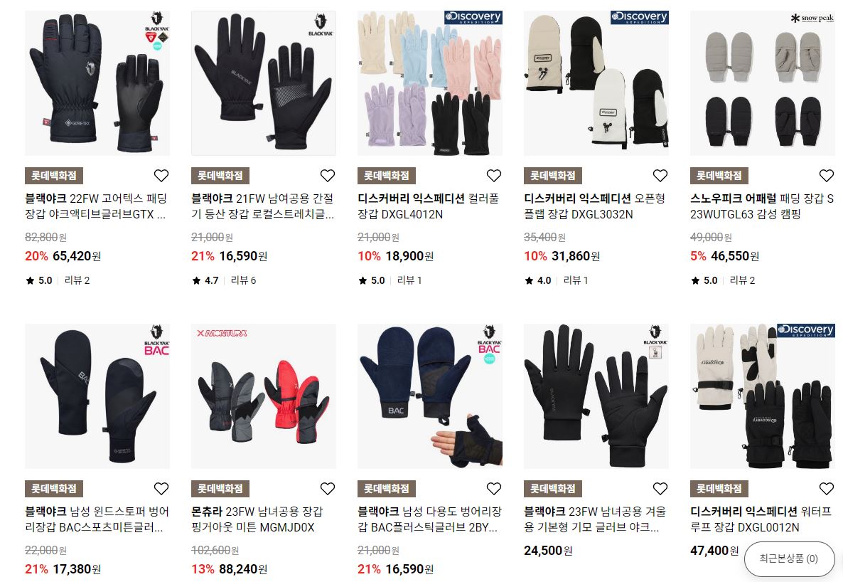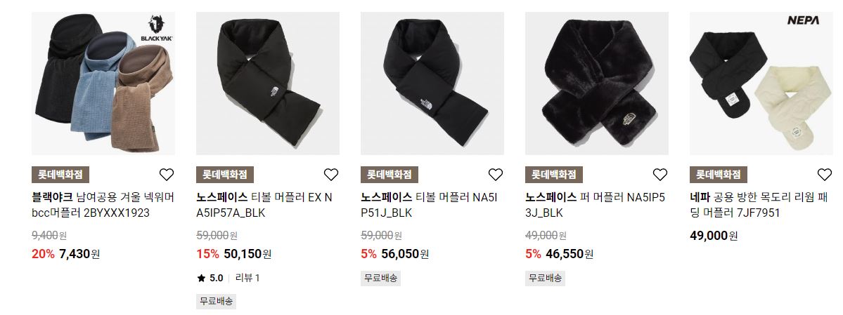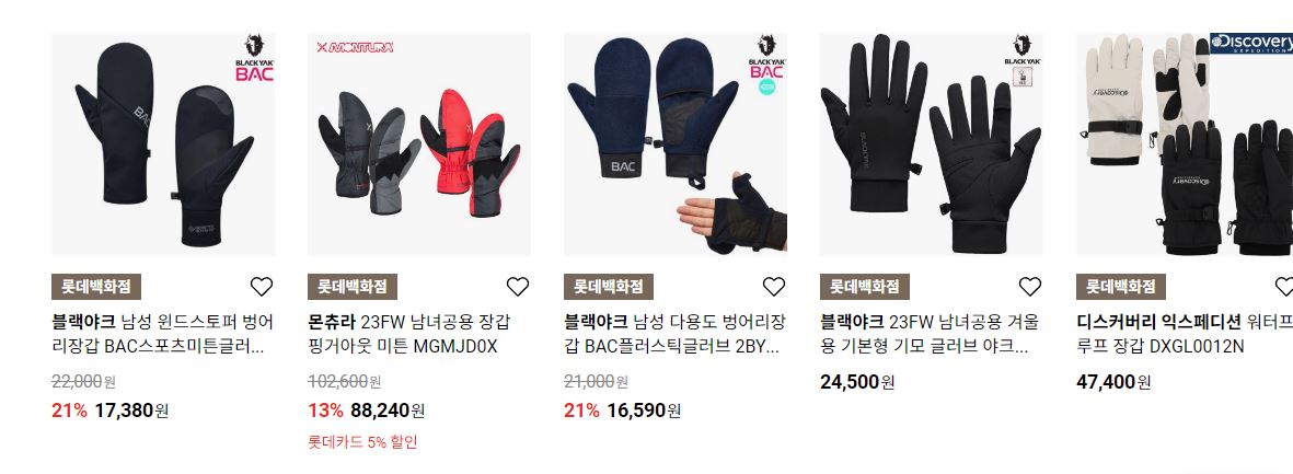 할인 품목 : 장갑, 머플러, 방한화 등