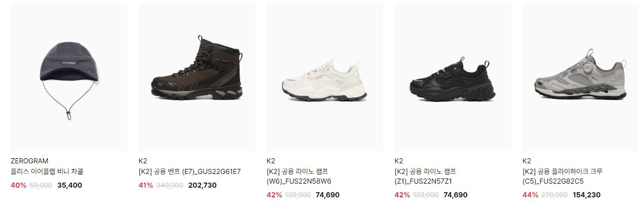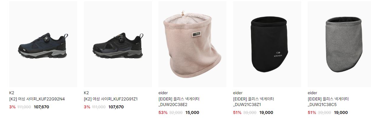 할인 품목 : 점퍼, 모자, 방한화 등