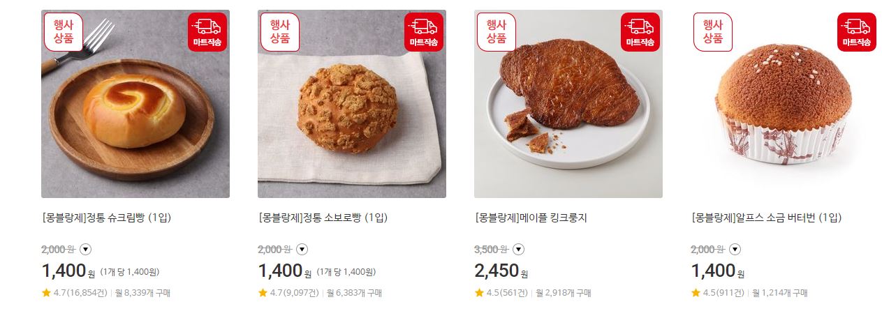 할인 품목 : 모카번, 단팥빵, 소보로빵 등