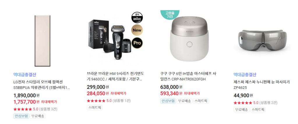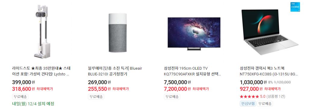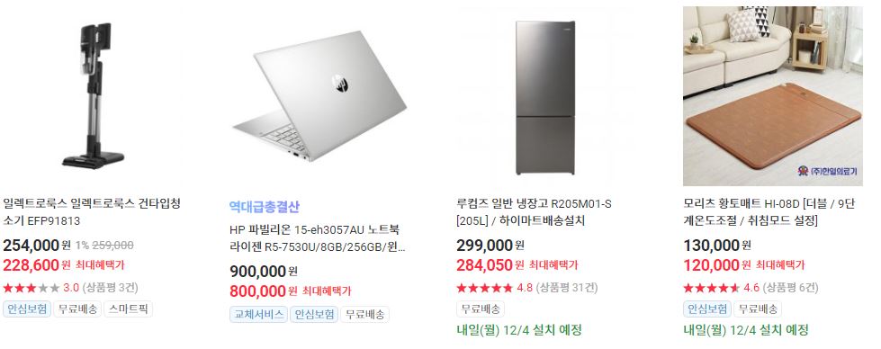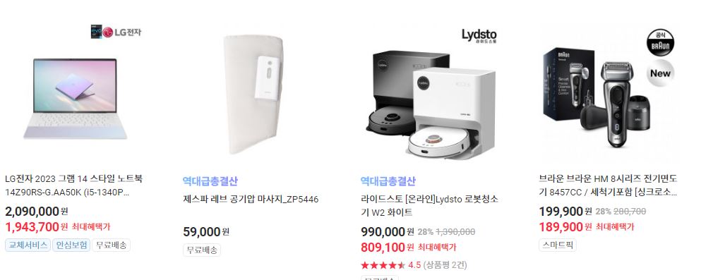 할인 품목 : 노트북, 로봇청소기, 휴대폰 등