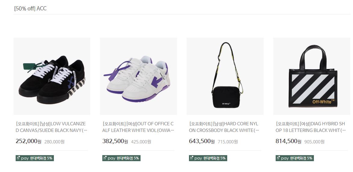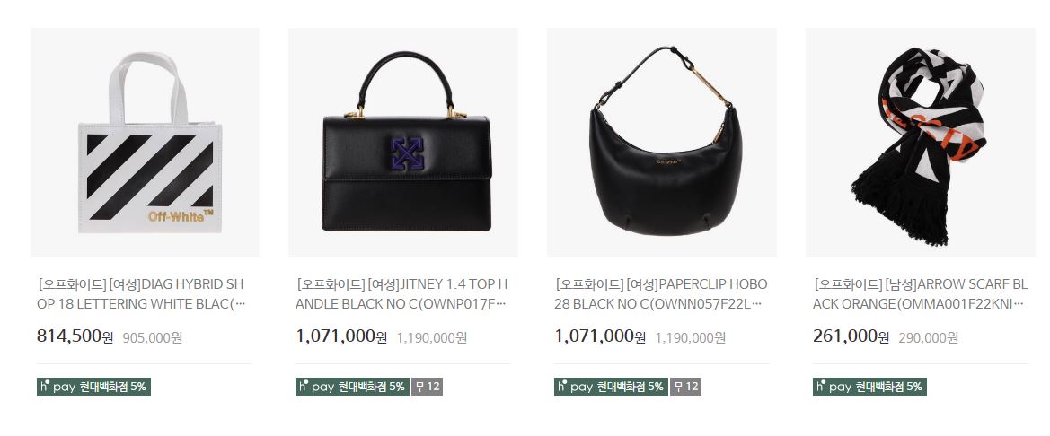 오프화이트 다양한 제품을 할인 판매하네요.