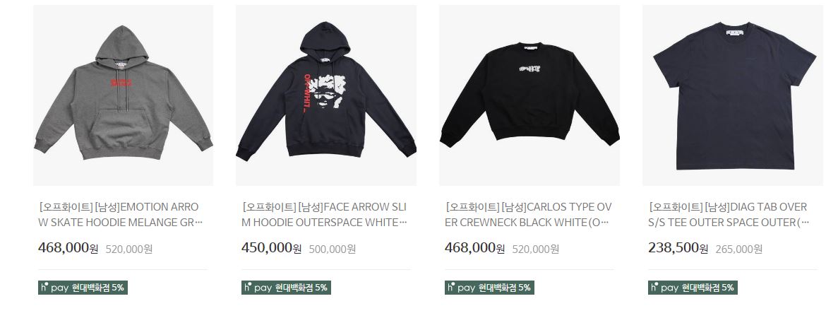 오프화이트 다양한 제품을 할인 판매하네요.