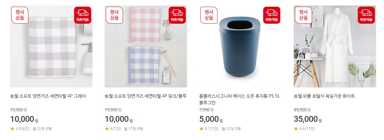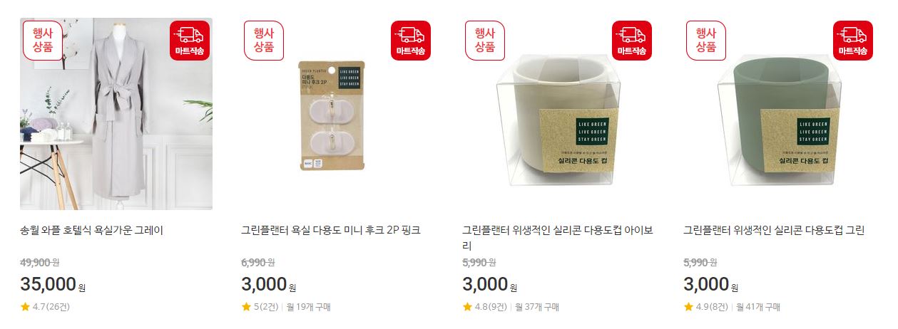 할인 품목 : 욕실용품, 주방용품, 장난감 등