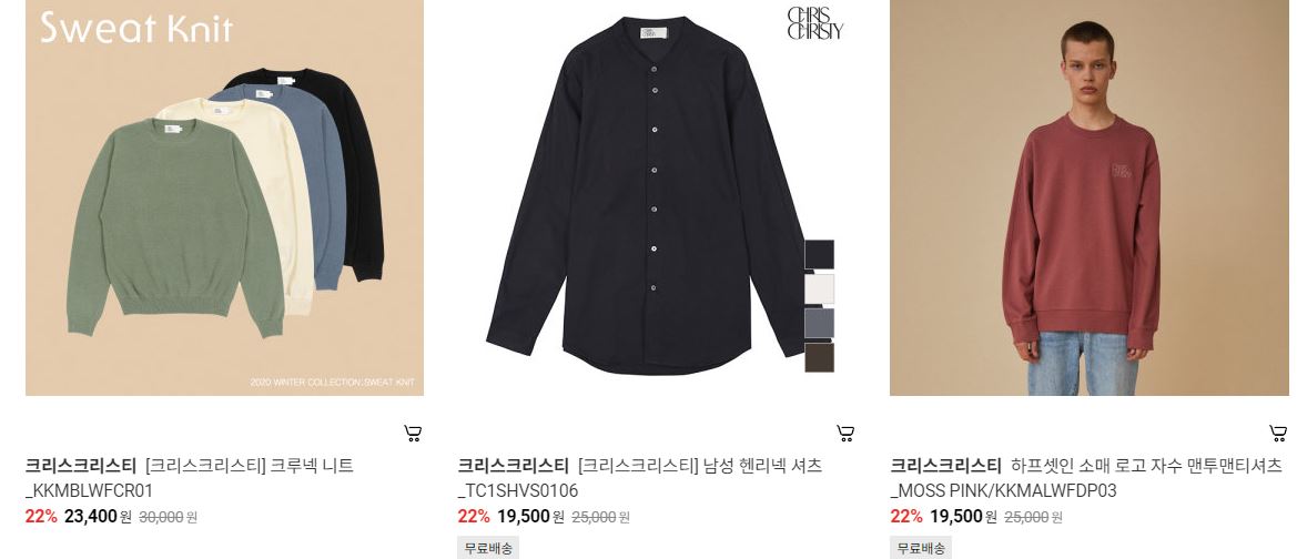 크리스크리스티 다양한 제품을 할인 판매하네요.