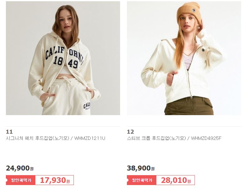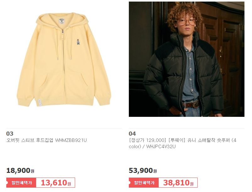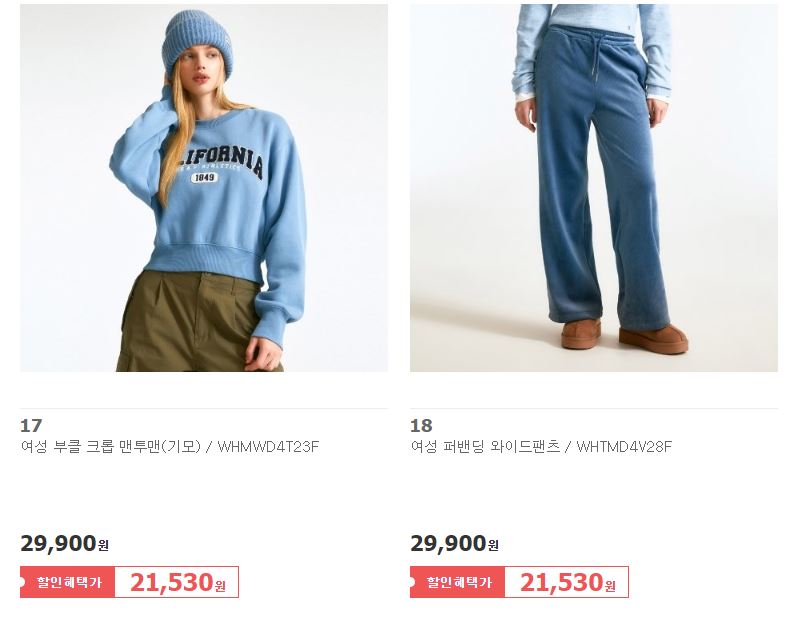 할인 품목 : 점퍼, 니트, 팬츠 등