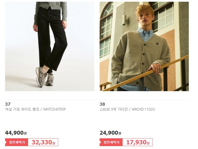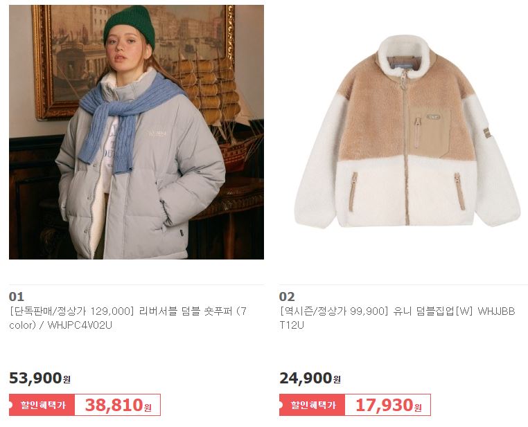 할인 품목 : 점퍼, 니트, 팬츠 등