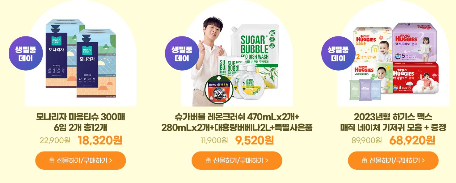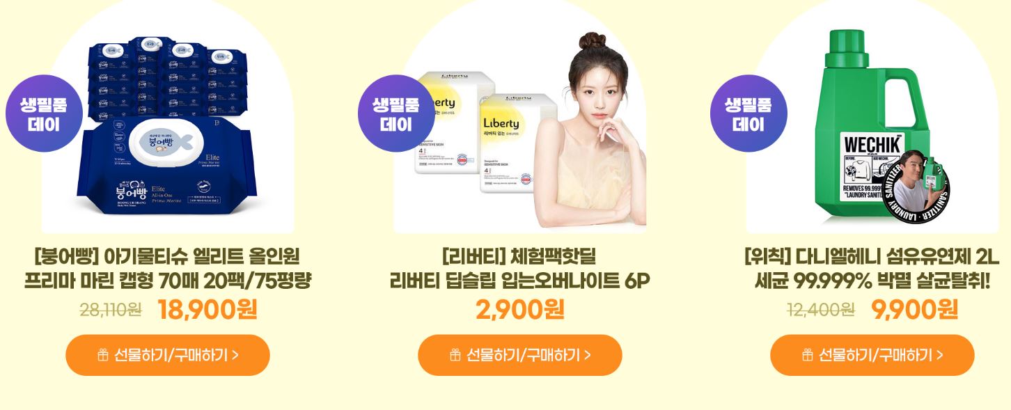 할인 품목 : 화장품, 물티슈 등