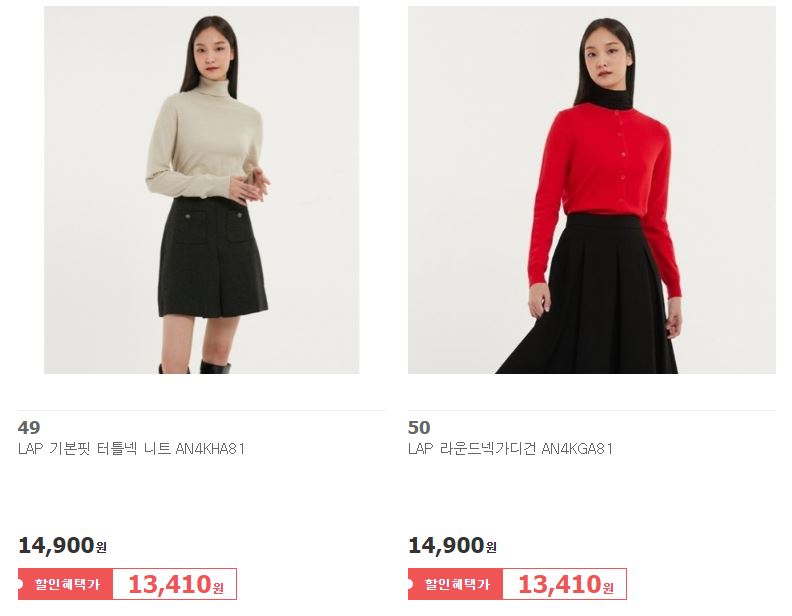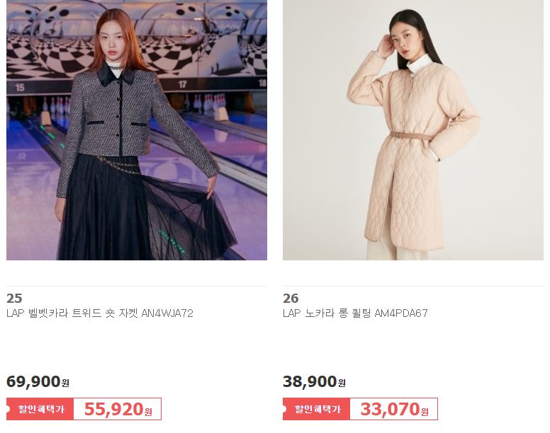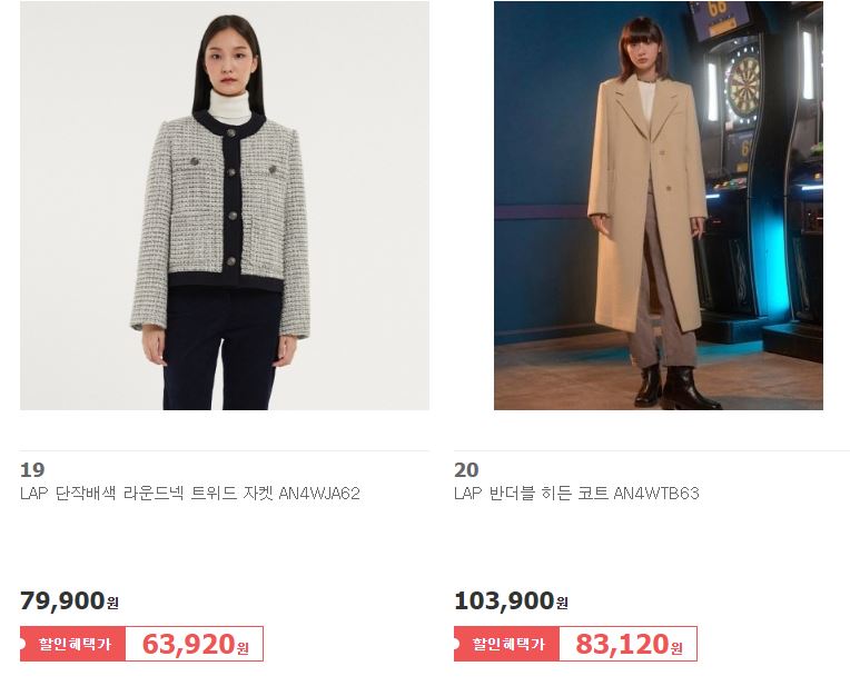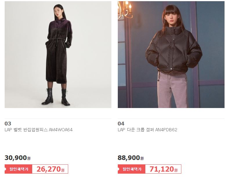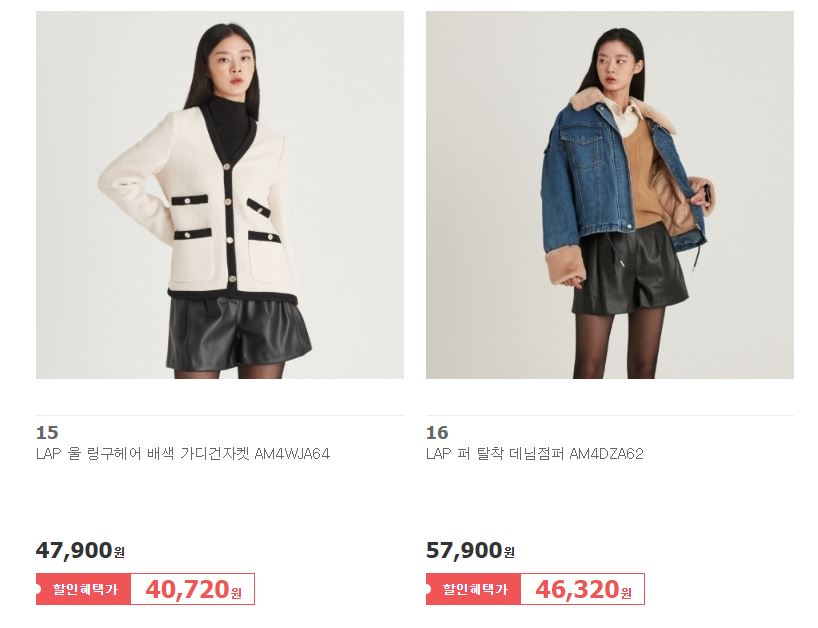할인 품목 : 점퍼, 코트, 원피스, 니트 등