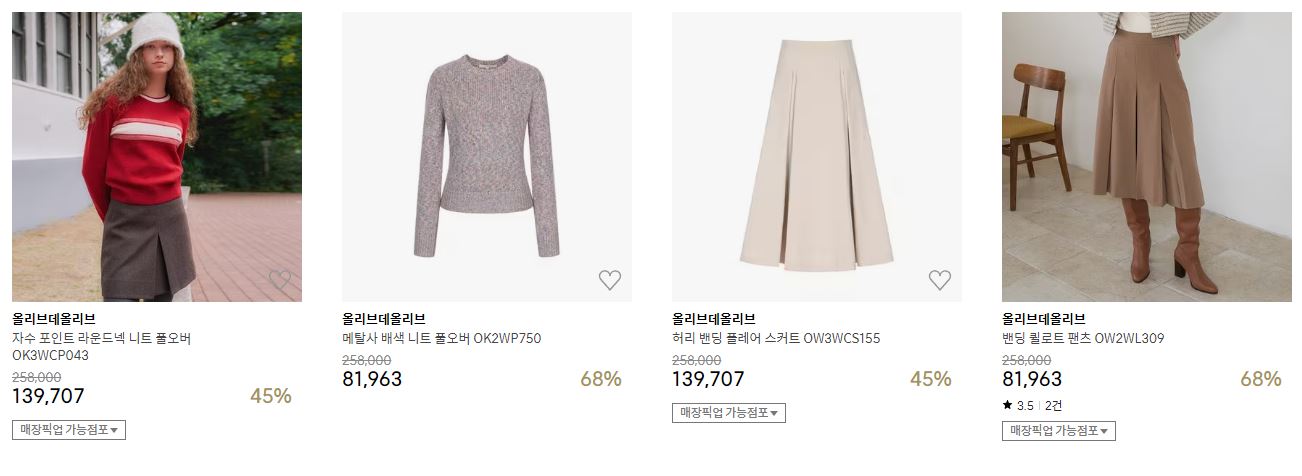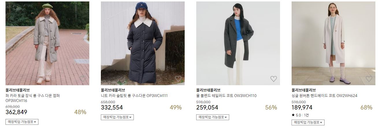 할인 품목 : 점퍼, 코트, 니트 등