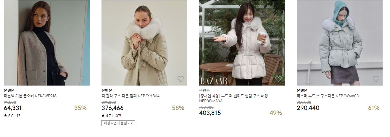 할인 품목 : 점퍼, 코트, 니트 등
