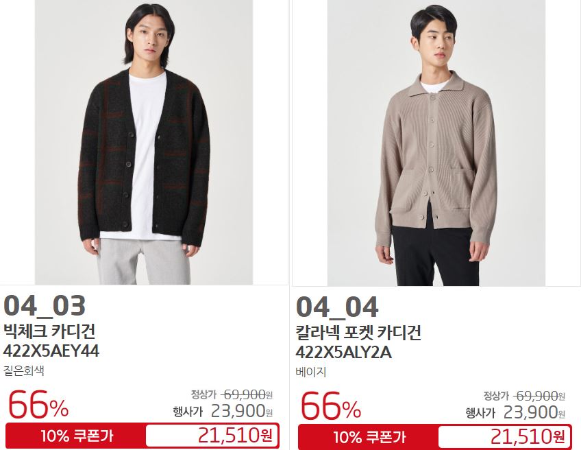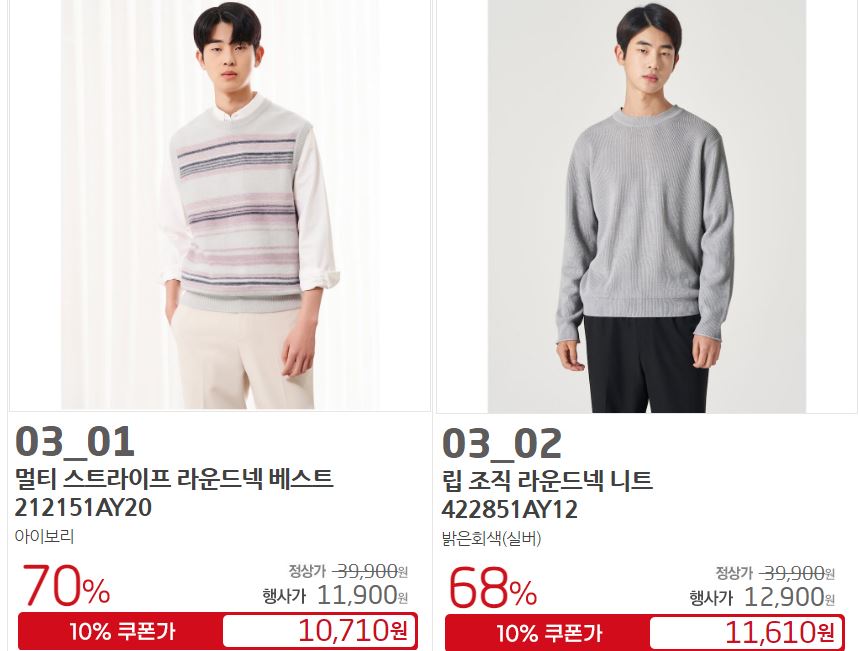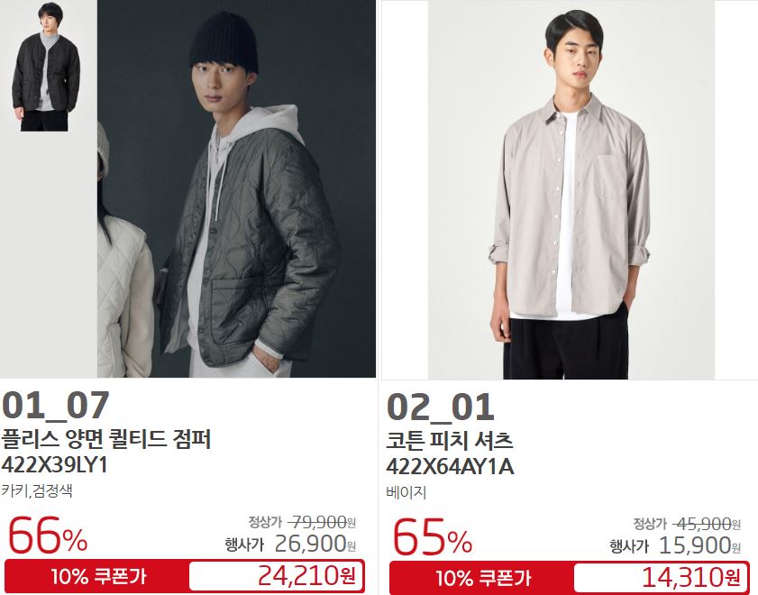 할인 품목 : 점퍼, 니트, 셔츠 등