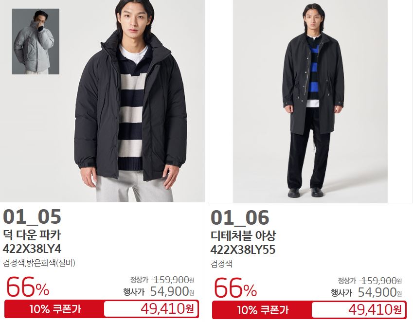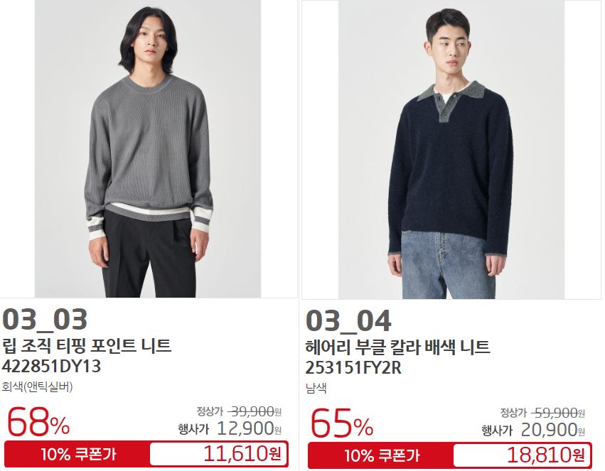 할인 품목 : 점퍼, 니트, 셔츠 등