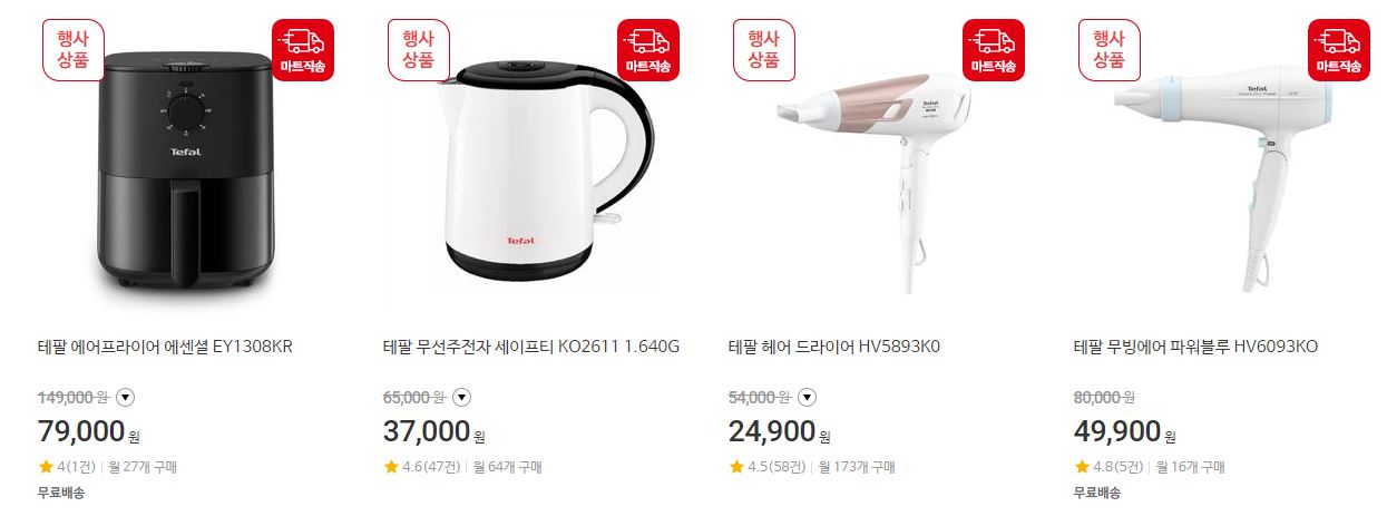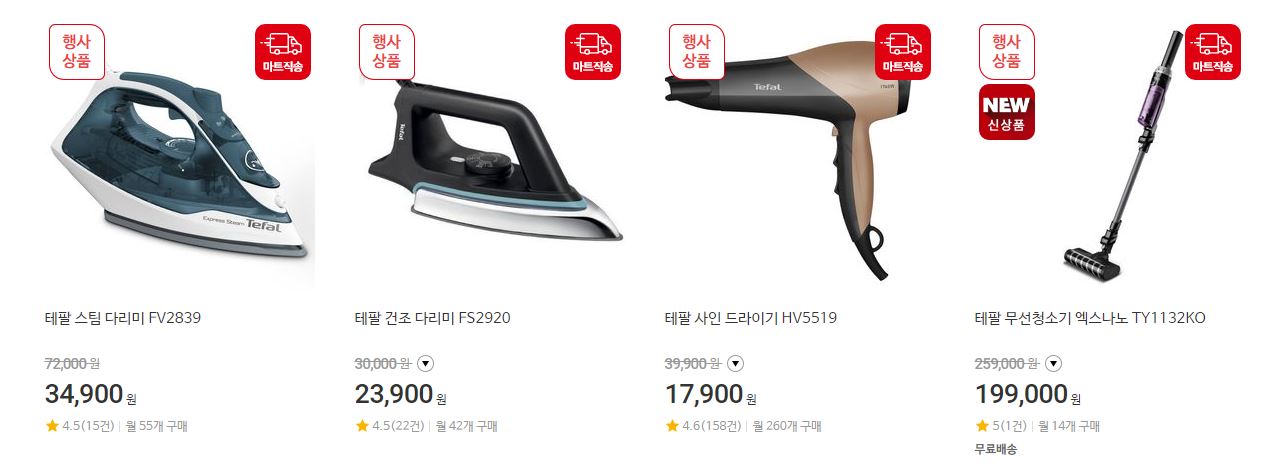 할인 품목 : 드라이어, 에어프라이어, 다리미 등