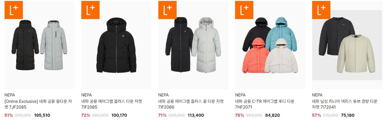 네파 다양한 제품을 할인 판매하네요.