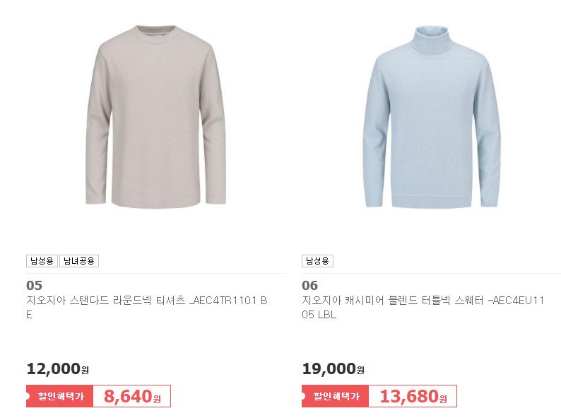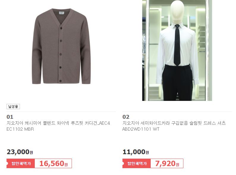 지오지아 다양한 제품을 할인 판매하네요.