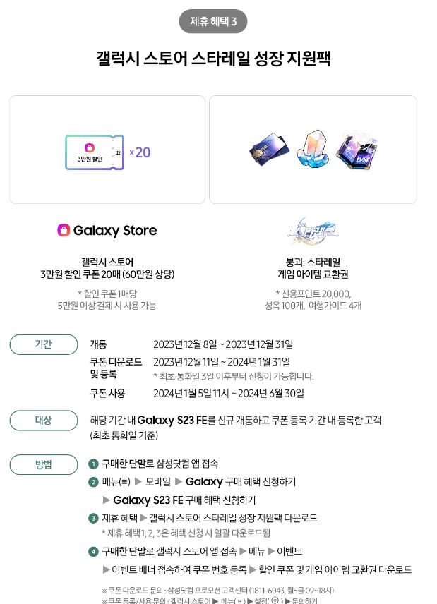 갤럭시 S23 FE 다양한 이벤트를 진행하네요.