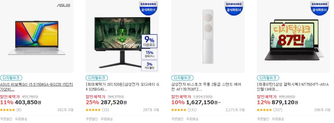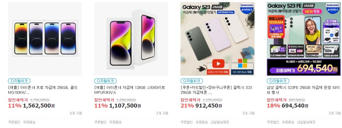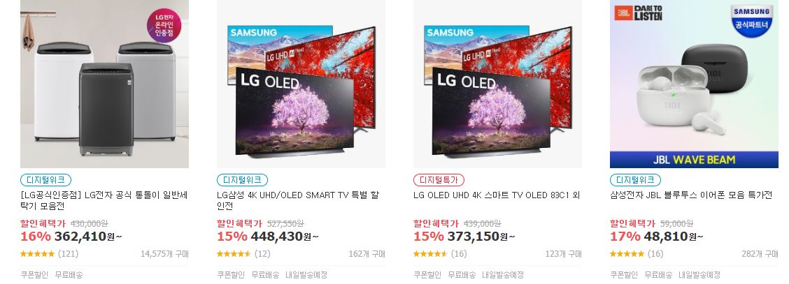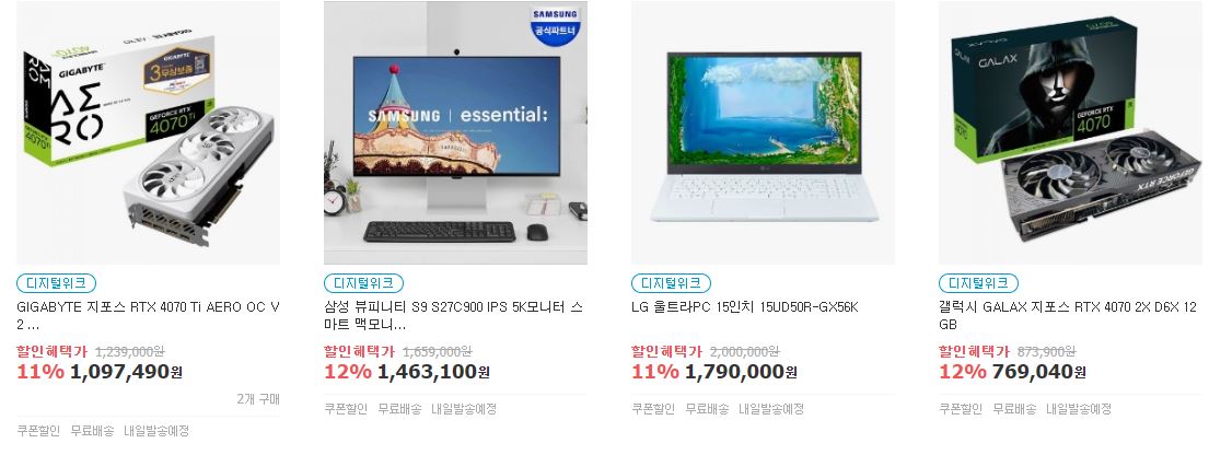 할인 품목 : 노트북, 그래픽카드, 휴대폰, 생활가전 등