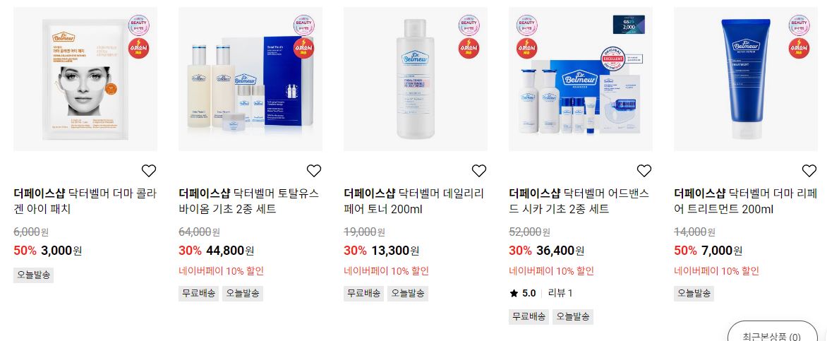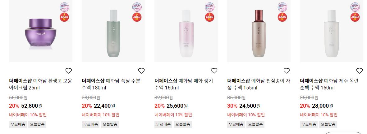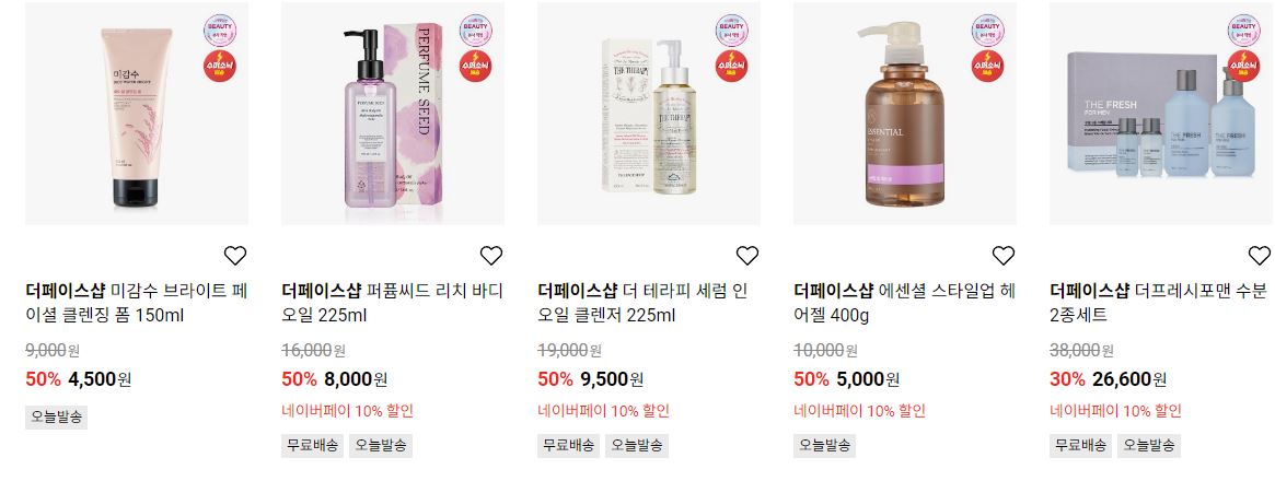 더페이스샵 다양한 제품을 할인 판매하네요.