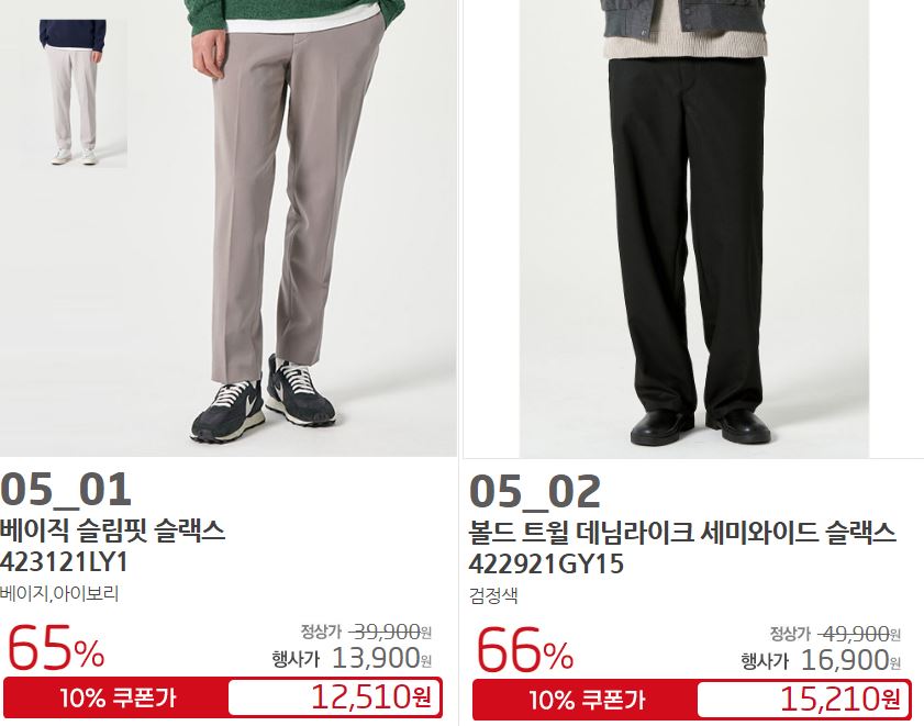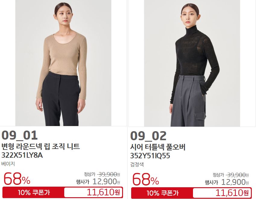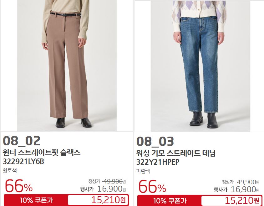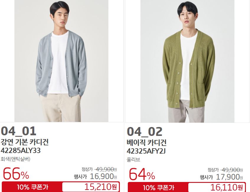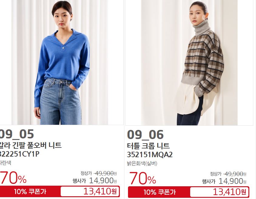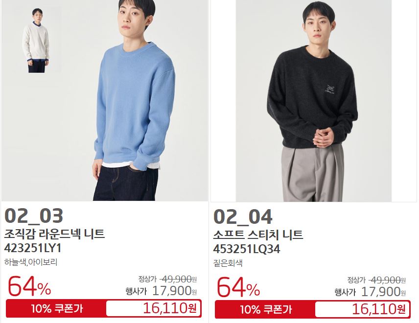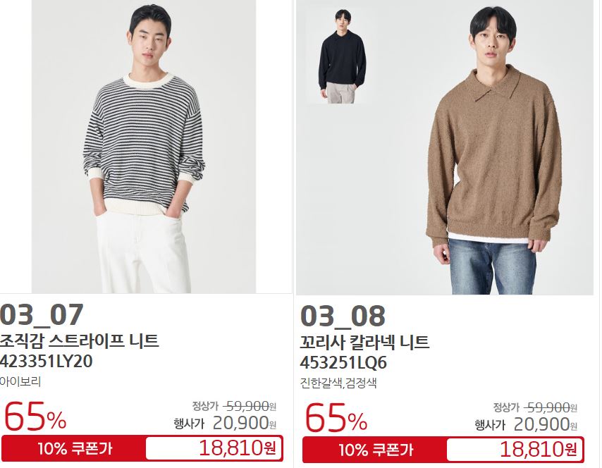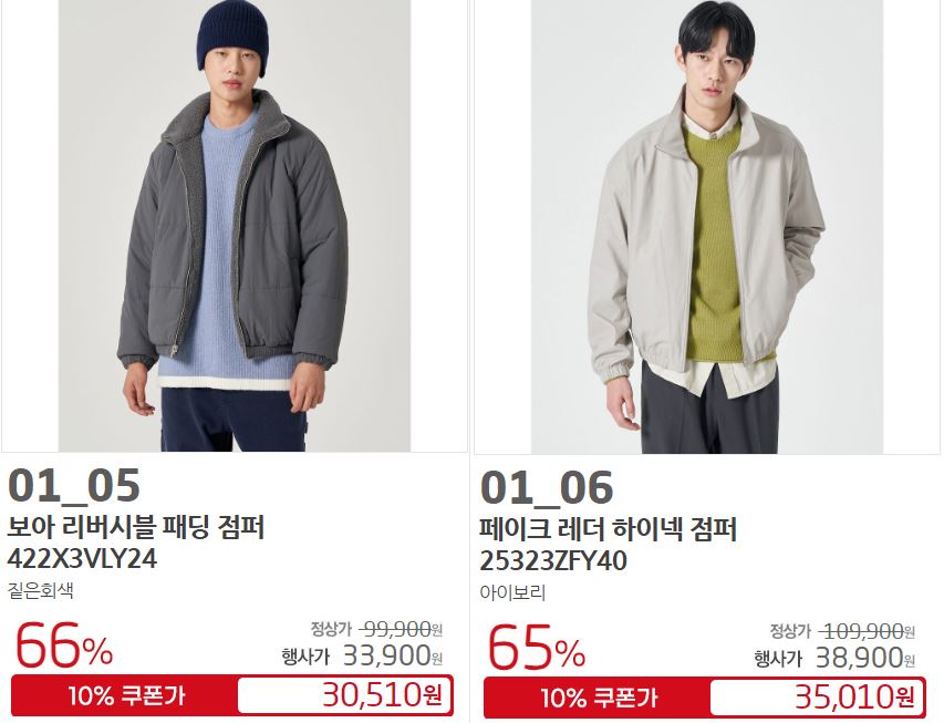 할인 품목 : 점퍼, 니트, 팬츠 등