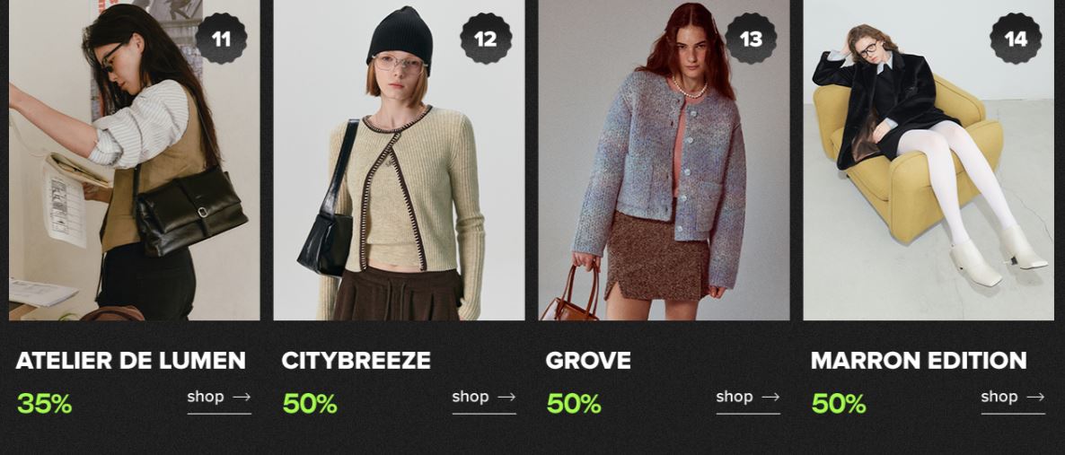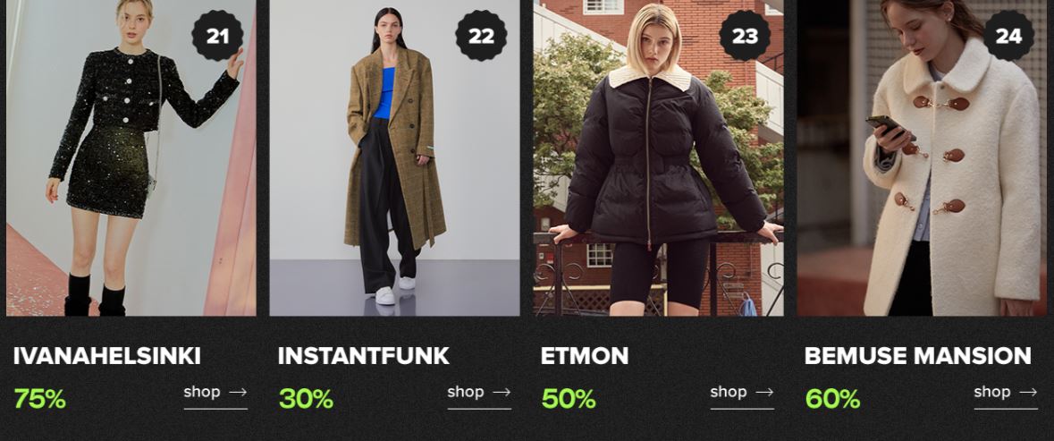 할인 품목 : 의류, 신발, 가방 등