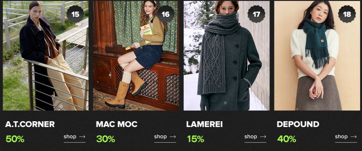 할인 품목 : 의류, 신발, 가방 등