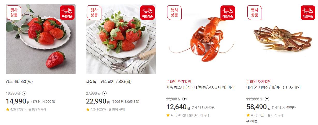할인 품목 : 과일, 수산물, 가공식품 등
