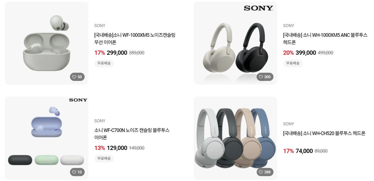 할인 품목 : 헤드셋, 이어폰 등