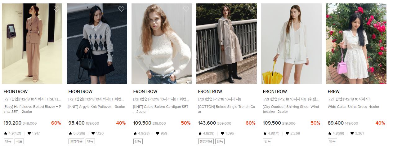프론트로우 다양한 제품을 할인 판매하네요.
