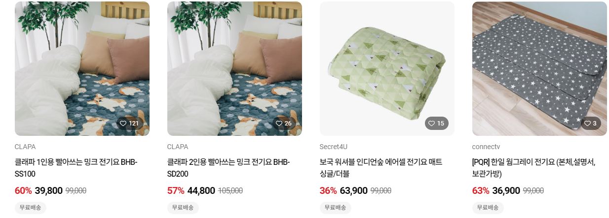 할인 품목 : 전기요, 온수매트 등