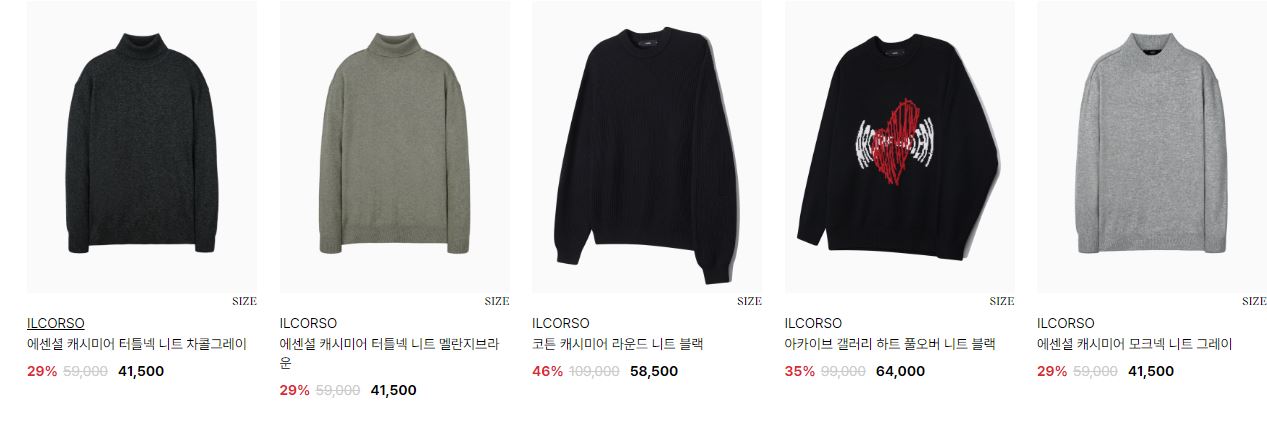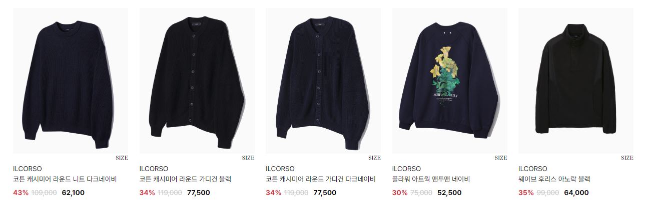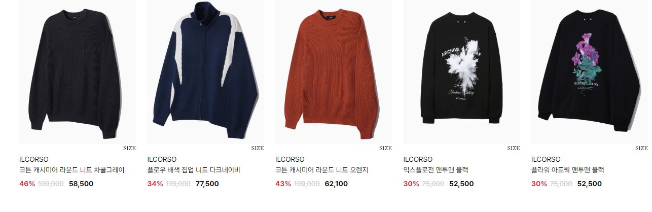 일꼬르소 다양한 제품을 할인 판매하네요.