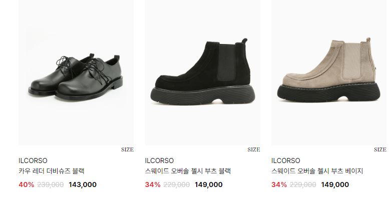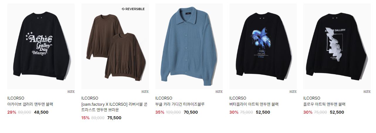 일꼬르소 다양한 제품을 할인 판매하네요.