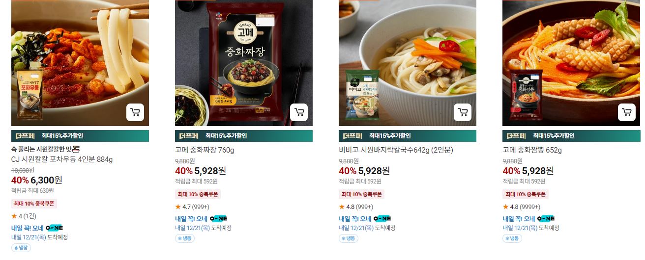 할인 품목 : 햇반, 짜장, 짬뽕 등