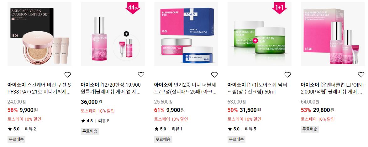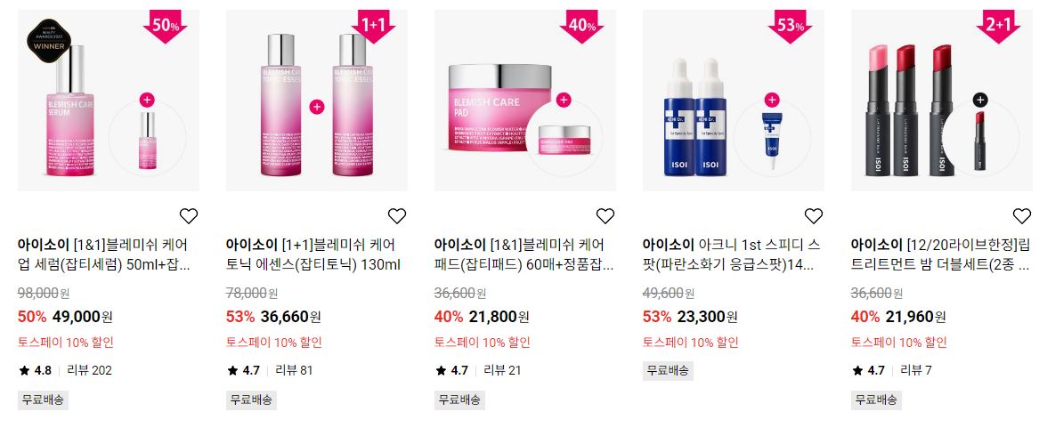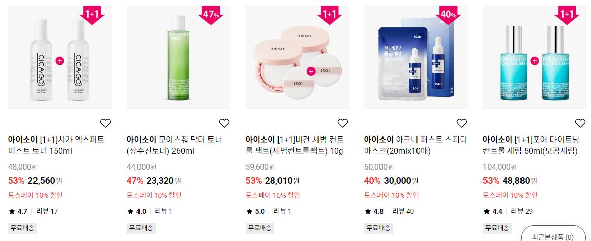 아이소이 다양한 제품을 할인 판매하네요.