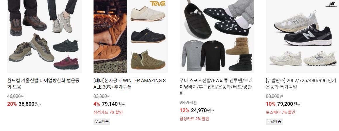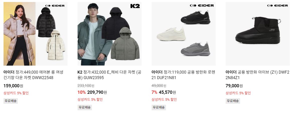 할인 품목 : 점퍼, 운동화, 텐트 등