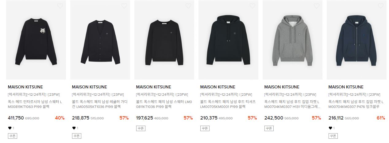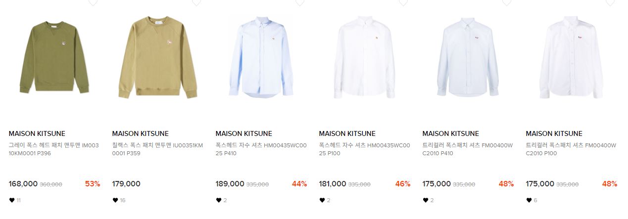 메종키츠네 다양한 제품을 할인 판매하네요.