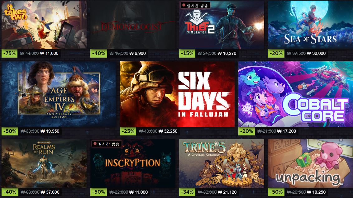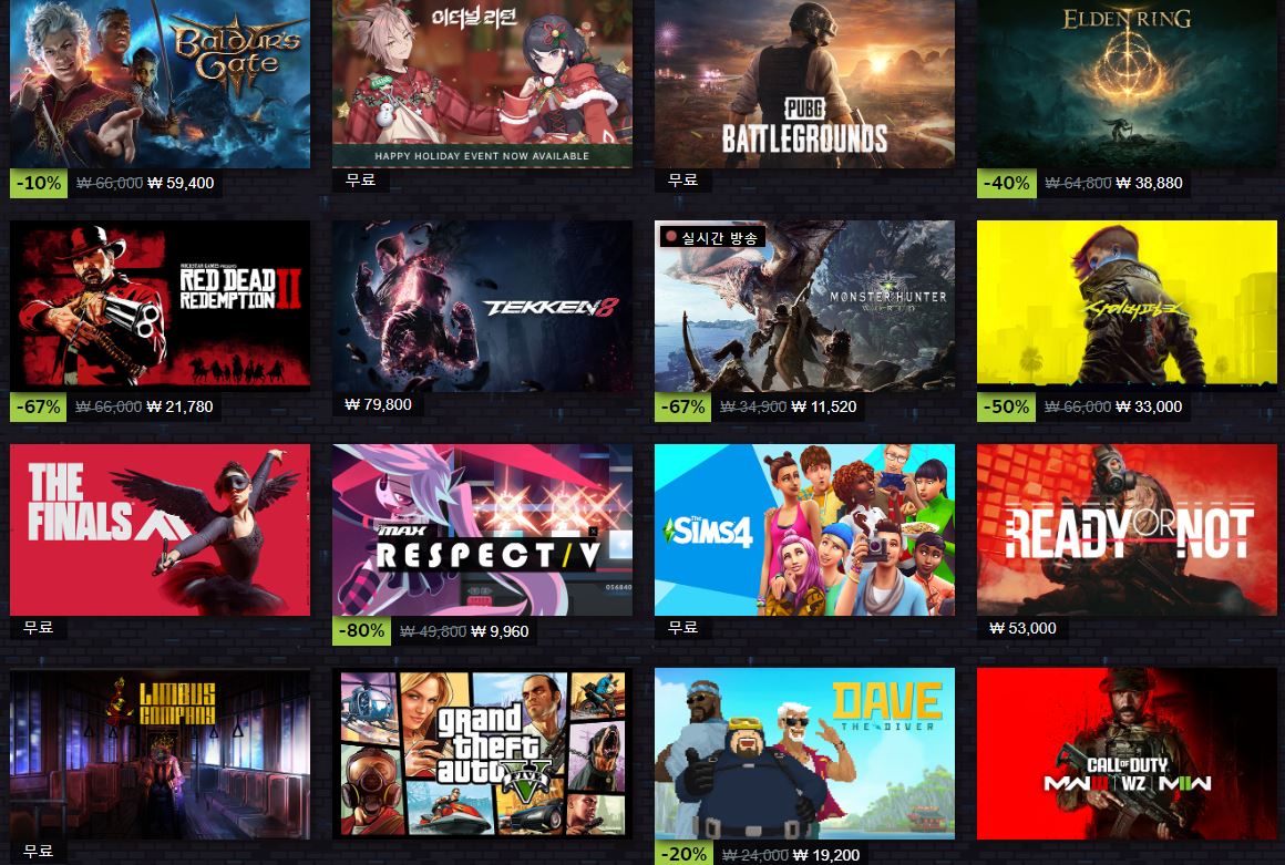 스팀 다양한 게임을 할인 판매하네요.