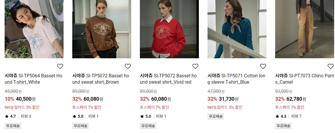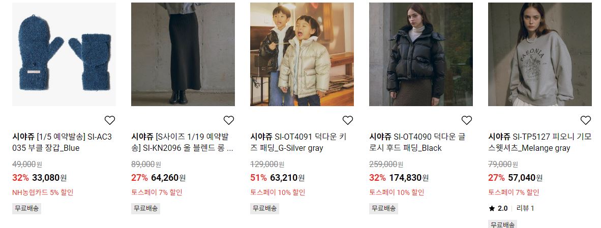 시아쥬 다양한 제품을 할인 판매하네요.