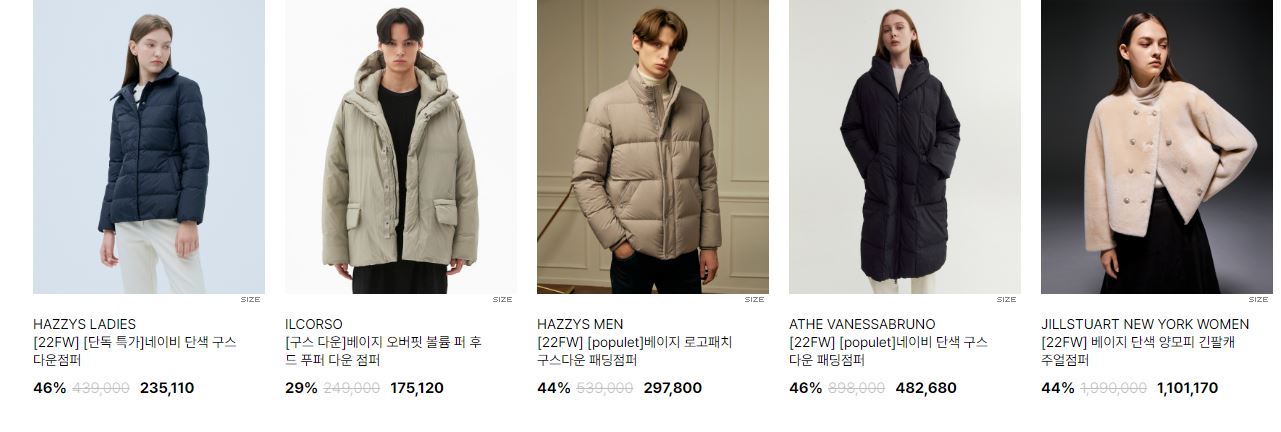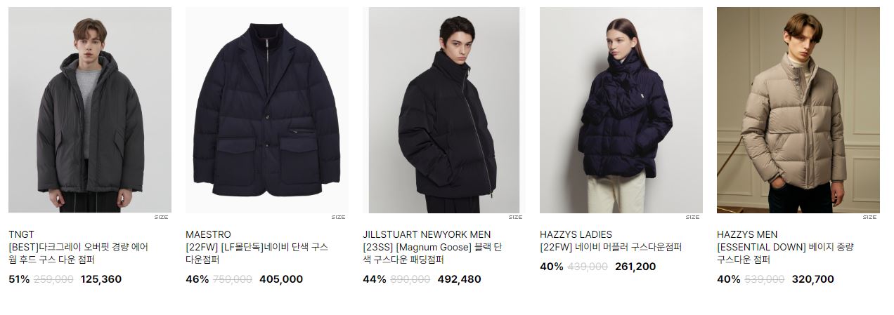 할인 품목 : 자켓, 코트, 점퍼 등