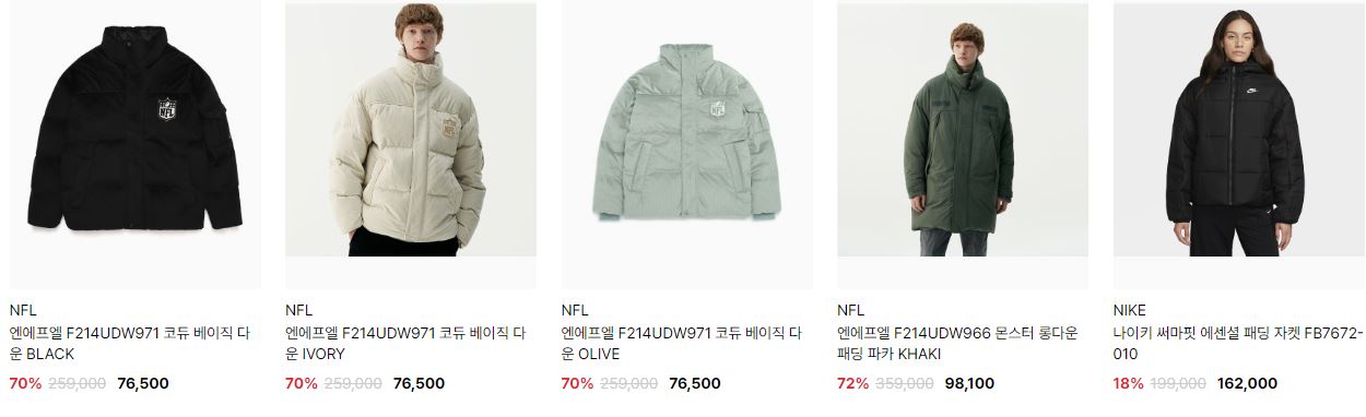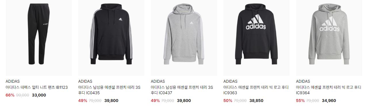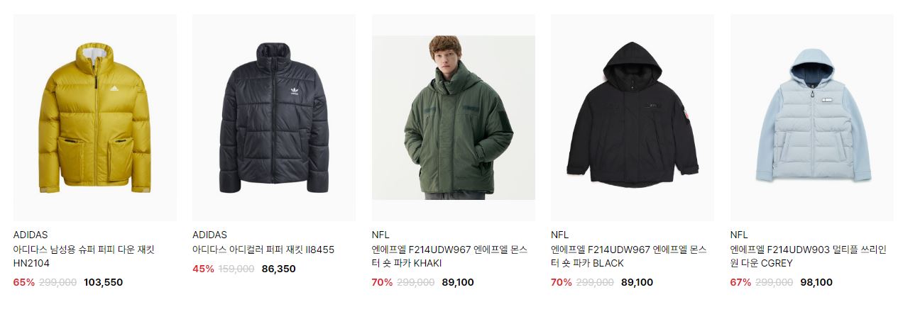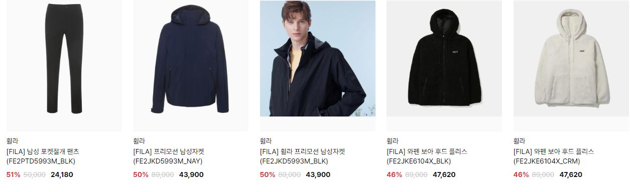 할인 품목 : 점퍼, 티셔츠, 신발 등