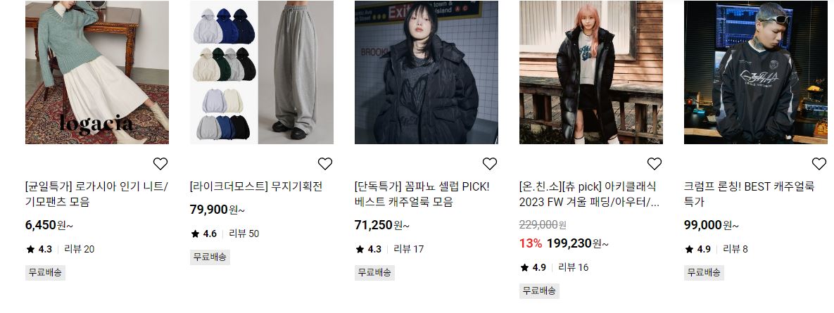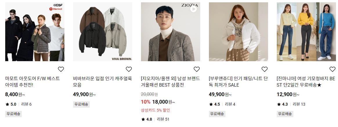 할인 품목 : 점퍼, 티셔츠, 자켓 등