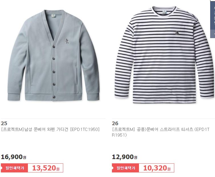 할인 품목 : 점퍼, 니트, 티셔츠 등