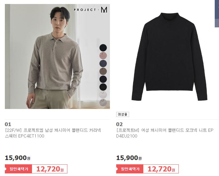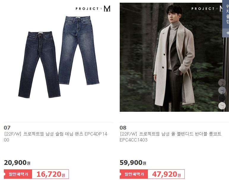 프로젝트엠 다양한 제품을 할인 판매하네요.